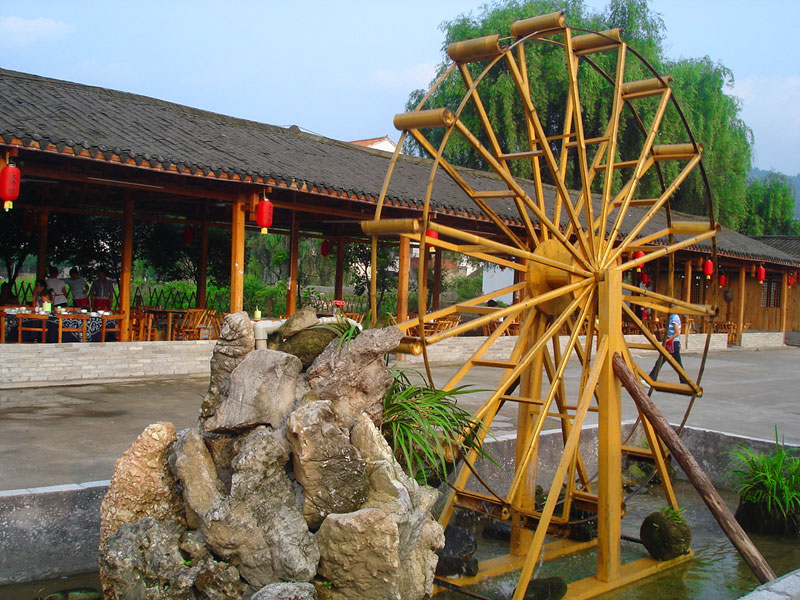張家界武陵源大作坊美食城是一家集垂釣休閑,特色餐飲,夜市為一體的大型風(fēng)味美食城!位于風(fēng)景如畫的武陵源風(fēng)景區(qū)區(qū)政府所在地,占地3000多平方米,可同時容納400多人就餐。這里也是景區(qū)內(nèi)匯集土家美食,苗家美食的第一坊!美食城按純木四合院建造,內(nèi)設(shè)酒作坊,豆腐作坊,臘味作坊,糍粑作坊,有垂釣區(qū),燒烤區(qū),菜品自助區(qū),客人廚藝展示區(qū),農(nóng)產(chǎn)品展銷區(qū)等。酒作坊內(nèi)聘請了民間煮酒大師現(xiàn)場煮酒,你有機(jī)會可以現(xiàn)場吃到熱乎乎的頭鍋酒,酒坊內(nèi)有純米酒,包谷燒,高梁酒,有用野果泡制的各種果酒---燈籠酒,楊梅酒,彌猴桃酒等,更有特色的是把高梁酒放在正在生長的楠竹內(nèi),用竹內(nèi)竹膜的香味把酒增香,十二天就把竹子砍下再放養(yǎng)三天就好了,客人要吃現(xiàn)場鋸竹筒酒吃!豆腐坊也是聘請民間老農(nóng)現(xiàn)場用自制的石磨做豆腐,在這里你可以吃到真正有豆香味的原汁原味的石磨豆腐,和渣,菜豆腐,豆腐腦等豆制品!臘味作坊里有冬天用各種香料熏制的正宗湘西藏臘肉,臘豬頭肉,臘香腸,臘豬腳,各種臘制品臘野味等。糍粑坊每天在晚上人多用餐高峰時現(xiàn)場打滋粑,客人也可以自己參與打糍粑這個快樂的過程,想受過年時才有的熱鬧情景!在垂釣區(qū)里我們放養(yǎng)有很多野生魚類,有時間了你可以來這里休閑垂釣,得到的魚我們就會給你現(xiàn)場加工,有清沌的,紅燒的,青椒燜的,酸湯的,都很好吃哦。燒烤區(qū)里,我們高薪聘請了燒烤大師為你現(xiàn)場制做,你也可以自己動手,有烤羊排羊腿,各種串烤,烤全魚,烤全兔等,還有各種鐵板烤可以自己炒著吃!菜品自己選區(qū)里有各種山野菜,壇子菜,干菜,臘味等,有各種鮮活的魚類,河蛘,水魚,田螺,龍蝦等,有各種農(nóng)家的土雞土鴨等,有各種鮮活的野味等你來享受美味呢!客人廚藝展示區(qū)里老板特設(shè)制地幾口大鍋, 很有特色的是, 你可以自己親自下廚, 酸甜苦辣任您自由調(diào)配 。 煮好了, 大家就圍著這“灶臺”合一的飯桌享受張家界的美食了。(張家界的三下鍋是很有特色的,是邊煮邊吃的, 只是這“三下鍋”是“大型三下鍋”而已。到張家界旅游,吃張家界的“三下鍋”是一種獨(dú)有的旅游體驗(yàn),到大作坊吃“大型三下鍋”,則更將會為你的旅程增添一份難得的回味。農(nóng)產(chǎn)品展銷區(qū)里展示著當(dāng)?shù)鼗蛳嫖鞯貐^(qū)最暢銷的農(nóng)產(chǎn)品食品:正宗湘西鄉(xiāng)里臘肉,香腸,各種臘制品,洗車河霉豆腐,靈潔牌剁椒辣醬系列,菌油,正宗茶籽油,苗家酸湯,鄉(xiāng)里正宗葛粉,大壇湘西五糧液,竹簡敲敲酒,張家界茅巖霉茶,野生蜂蜜,高山葛粉,張家界第一山珍巖耳,葛根片等等!