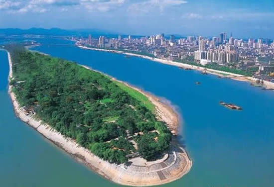 毛主席有一首《沁園春·長沙》:“獨(dú)立寒秋,湘江北去,橘子洲頭,看萬山紅遍,層林盡染”,這里所說的橘子洲就在長沙市區(qū)的湘江中心,是一個長約十華里的長島,是長沙市的重要名勝。