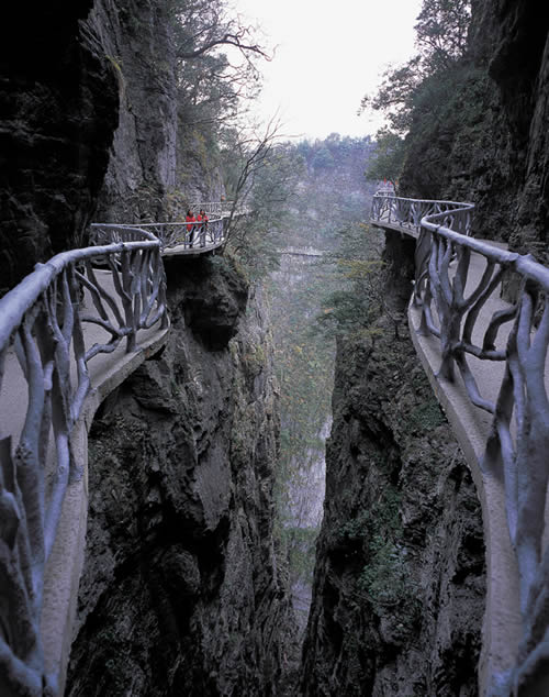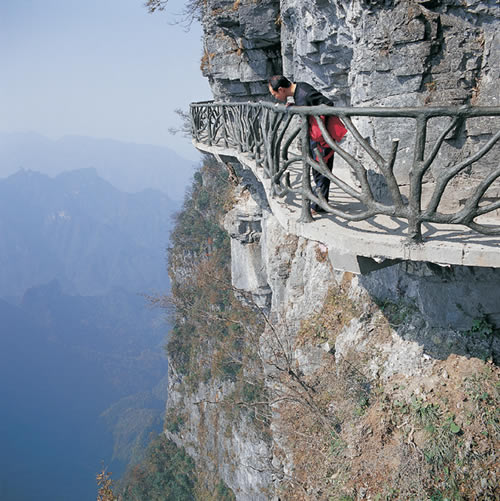 據(jù)施工人員介紹,此條棧道也是他們所修棧道中施工最難,最險(xiǎn)峻的一條。如果您還覺得不夠刺激的話,在棧道的完結(jié)處的兩個懸崖之間有一條長160米的懸索吊橋,同時,在海拔最高點(diǎn)還有一個挑戰(zhàn)心里極限的玻璃站臺,在這里,如果你能挺直腰板伸開雙臂,那么,您就是真正的勇士了。