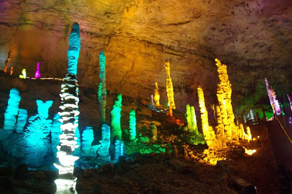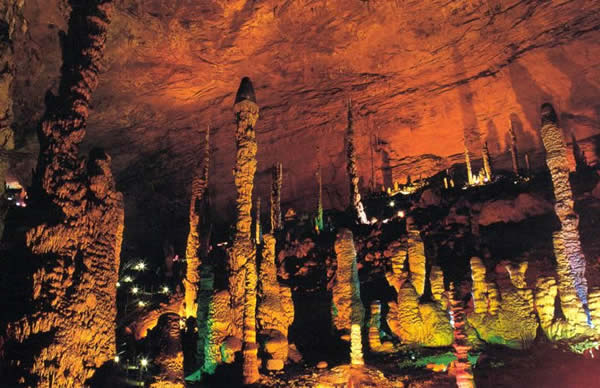 萬畝糧田 黃龍洞位于索溪峪東面,被稱為“地下魔宮”,洞口霧靄迷漫,洞內長廊蜿蜒,鐘乳懸浮,石柱石筍林立,還有石簾、石幔、石花、石琴,琳瑯滿目,異彩紛呈,令人目不暇接!岸赐舛础、“樓外樓”、“天外天”、“山外山”,盤根錯節(jié)。黃龍洞內可分四層,水陸并進,從最低陰河至最高穹頂,垂直高度差有100多米,洞內有一個水庫(黃龍水洞)、二條陰河(響水河、水晶河)、三個地下瀑布(黃龍瀑、天水瀑、天地瀑)、四個水潭、十三個廳(宮)(龍舞宮、水晶宮、迷人宮……)、九十六條游廊,長度約達15公里,最大的廳堂有12000平方米,可容納萬人。真可謂是洞中乾坤大,地下有洞天。入黃龍洞,如入人間仙境一般。 |