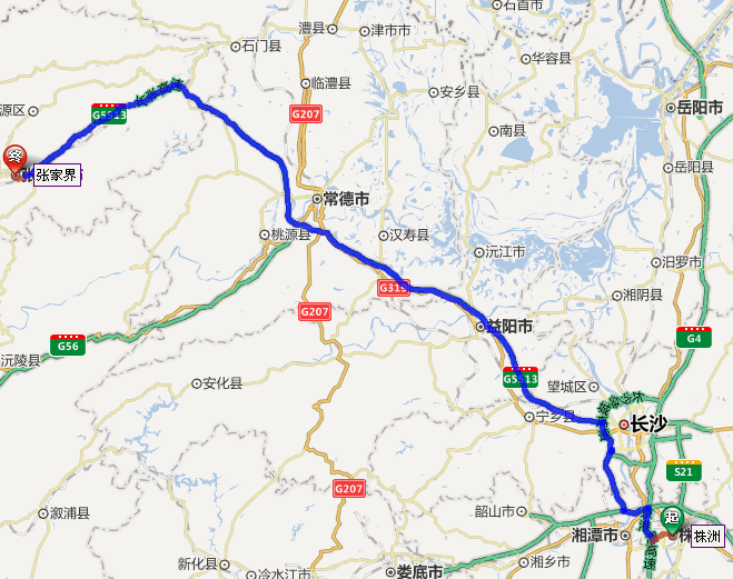 株洲去張家界自駕車線路圖: