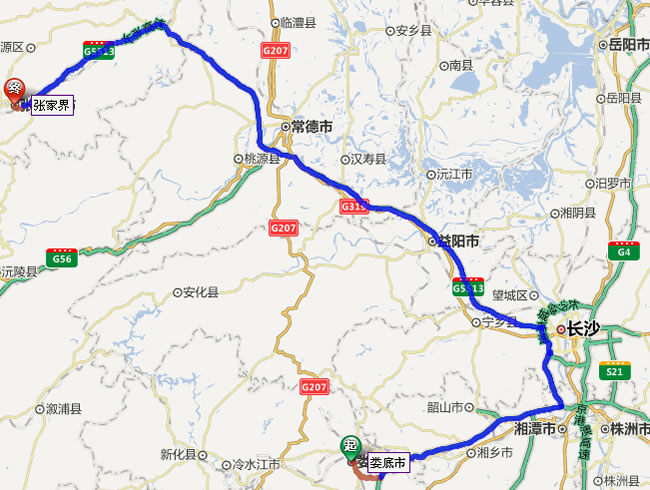婁底去張家界自駕車線路圖