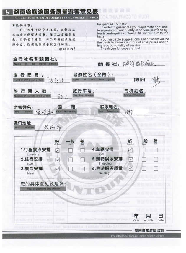 該游客接待反饋意見(jiàn)單掃描
