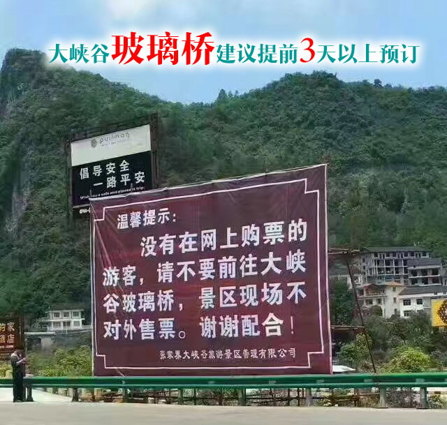 4、沒有在網(wǎng)上購票的游客,請(qǐng)不要前往大峽谷玻璃橋,景區(qū)現(xiàn)場不對(duì)外售票。