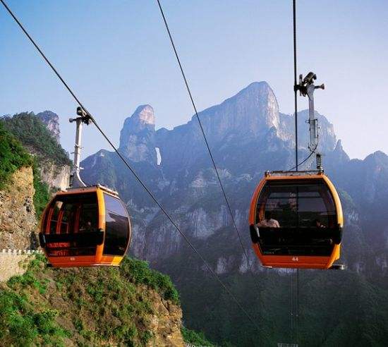 百龍?zhí)焯,垂直高?35米,運(yùn)行高度326米,由154米山體內(nèi)堅(jiān)井和172米貼山鋼結(jié)構(gòu)井架等組成,采用三臺(tái)雙層全暴露觀光電梯并列分體運(yùn)行,每臺(tái)次載客50人次,運(yùn)行速度3米/秒,三臺(tái)同時(shí)運(yùn)行每小時(shí)往返量達(dá)4000人次。百龍?zhí)焯莸男藿▽?shí)現(xiàn)“山上游,山下住”的目標(biāo),提供了交通保障,將袁家界天下第一橋、迷魂臺(tái)、天懸白練以及烏龍寨、楊家界等絕世美景從幕后推向了前臺(tái),并將天子山、袁家界、金鞭溪等精品旅游線路連為一體,解決了多年困擾景區(qū)的交通瓶頸問(wèn)題。